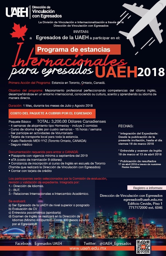 Programa de Estancias Internacionales para Egresados UAEH 2018