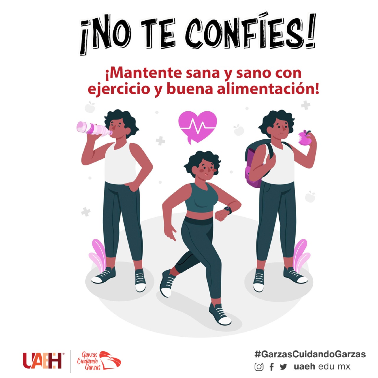 ¡No te confíes! Mantente sana y sano con ejercicio y buena alimentación