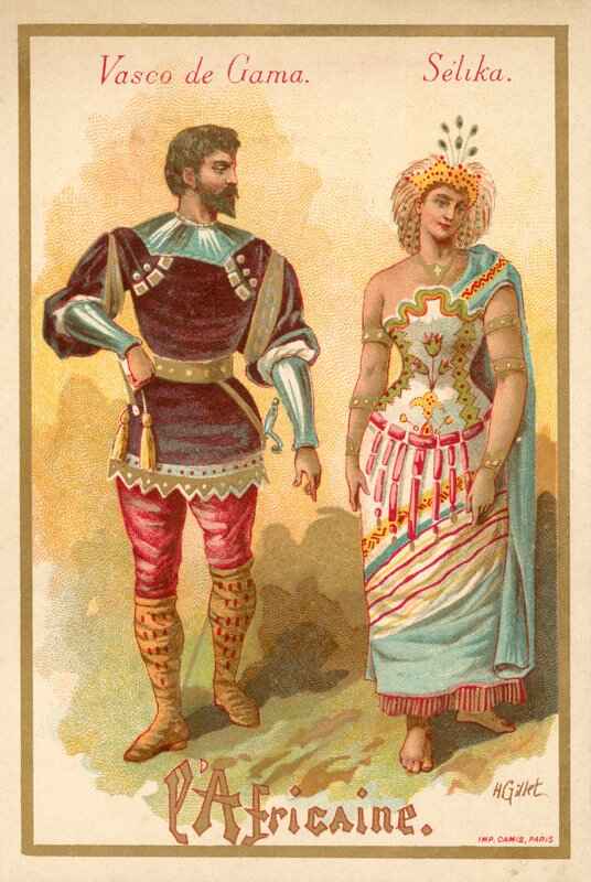 Figure: Vasco Da Gama et Sélika, extrait de L’Africaine (chromolithographie). École française (s. d.). Chromolithographie. Collection privée. Bridgeman Images / Look and Learn.