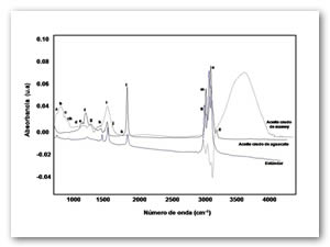 Los espectrogramas de las muestras de los aceites crudos son muy similares en su número de onda a las investigaciones realizadas por Guillén y Cabo (4) y Yang et al. (5 en diferentes aceites y grasas.