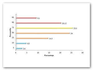 | Percentila | Femenino n (%) | Masculino n (%) | Total n (%) |