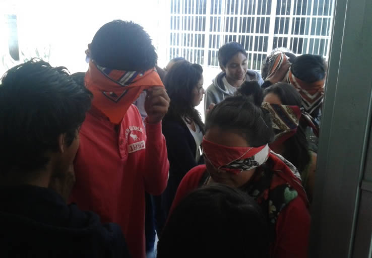 Se les pide, se tapen los ojos y se les ayuda a ir pasando a las mesas.