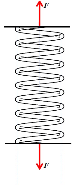 La Figura 3 representa un resorte helicoidal de espiras cerradas, estirado bajo la acción de una fuerza axial F.