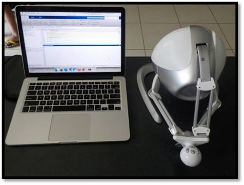 En la Figura 4 muestra el diseño de la interface háptica donde se aprecia una computadora personal, el dispositivo háptico y el alumno.