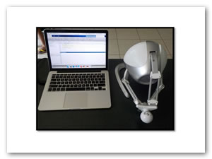 El equipo experimental empleado para crear un sistema háptico consiste de una computadora personal con software especializado para el renderizado háptico como MATLAB, Simulink, QUARC, 3D Animation, entre otros; además de un dispositivo háptico Novint Falcon. En la Figura 2 se muestra el equipo experimental utilizado por los estudiantes y que puede ser fácilmente extendido para el diagnostico de pacientes con alguna discapacidad en miembros superiores como es en mano, muñeca, etc. En esta sección se hace una descripción breve del equipo experimental con sus características.
