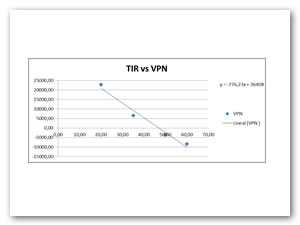 Primero vamos a llenar una tabla con valor del VPN según una TIR supuesta y vamos a ver el comportamiento de una gráfica de esto. Cuando la TIR sea cero entonces tendremos el verdadero valor de este elemento financiero.