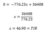 Ahora sustituiremos valores que nos arrojó la tabla del método de la gráfica de Excel para obtener un valor de TIR aproximado.