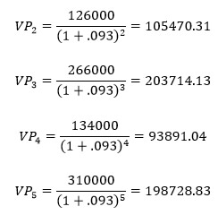 | Valor presente de la ganancia | 233302.84 | 105470.31 | 203714.13 | 93891.04 | 198728.83 |