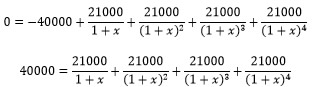 Rafael podría prestarle a la empresa hasta $74554.66 con una tasa de interés del 8% y seguiría manteniendo un Valor Presente Neto positivo. Haciendo un préstamo grande, seguro y viable. ¿Qué es lo que pasaría si Rafael quiere saber a qué interés la empresa le puede pagar teniendo un VPN de 0 e invirtiendo $40,000? ¿Es posible saber esto?