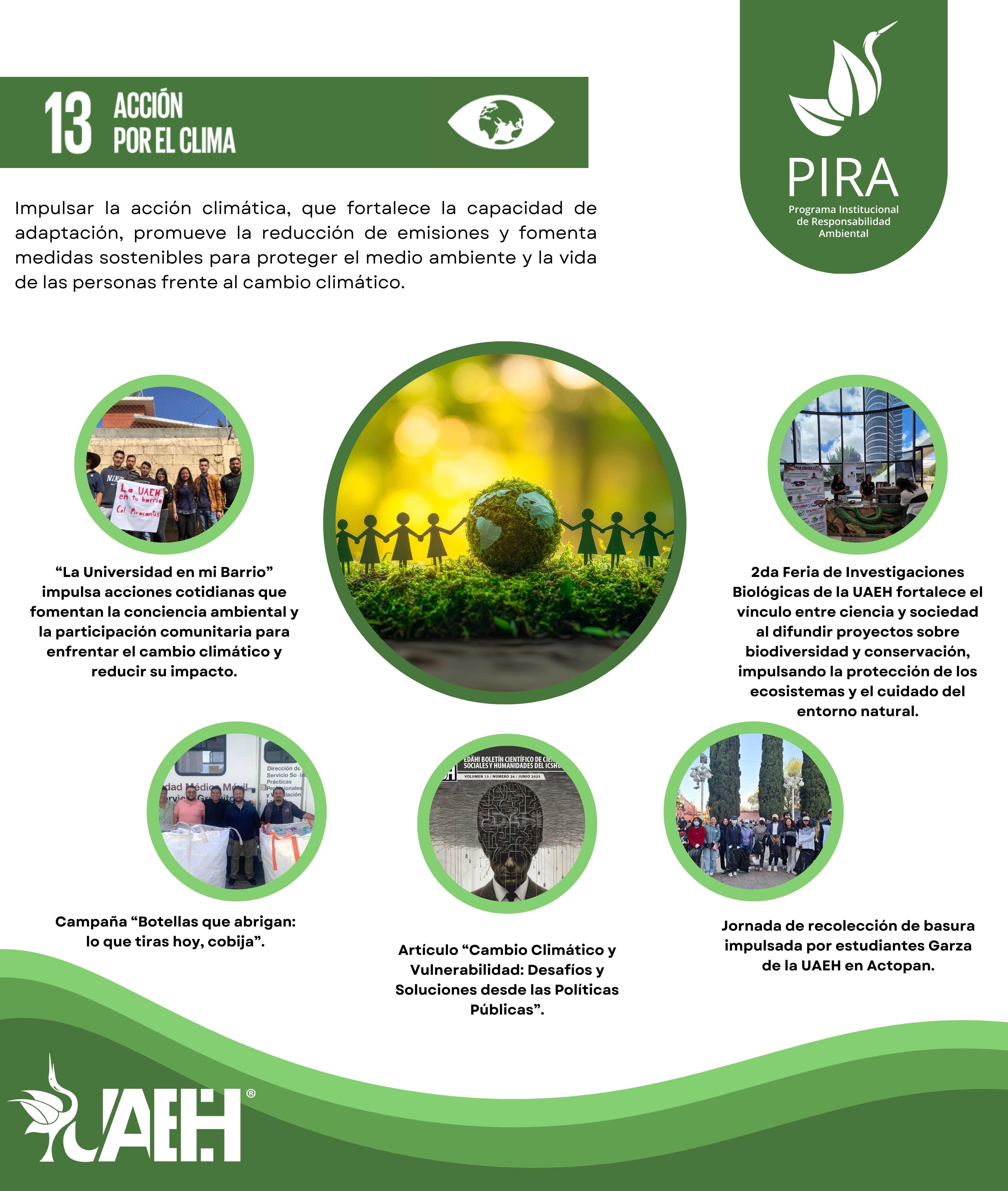 Derivado de ello, se ha creado el Programa Institucional de Responsabilidad Ambiental (PIRA), iniciativa sustentable que pretende actuar como promotor, educador, eje operativo y facilitador de las actividades que desarrolla la comunidad universitaria, para contribuir al uso racional de los recursos naturales, el cuidado del medio ambiente y la responsabilidad social. Estará integrado por Subprogramas de acuerdo con las características, necesidades y demandas institucionales, fungiendo como guía de unidades académicas y dependencias administrativas, para llevar a cabo acciones de mejora e innovación, generando estrategias enfocadas a mantener una responsabilidad ambiental alineada a los elementos y cambios que el medio y la sociedad exhorten.