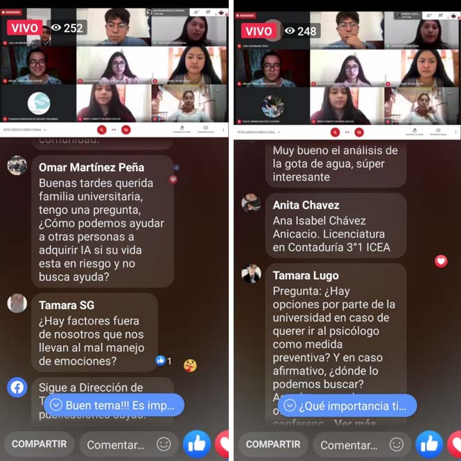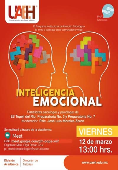 El día viernes 12 de marzo se presenció un Conversatorio virtual con el nombre de “Inteligencia emocional”, organizado por el programa instituciones de Psicología, donde participo la Lic. En Psicología dulce Karina Alonso Serna docente de esta Institución, presenciando el evento por parte de los estudiantes y personal docente de la Escuela, donde los estudiantes participaron disipando dudas respecto a la salud mental y las maneras en las que pueden encontrarse a sí mismo, los especialistas por más de 1 hora estuvieron participando con el desarrollo del tema y resolviendo dudas generadas por los estudiantes.