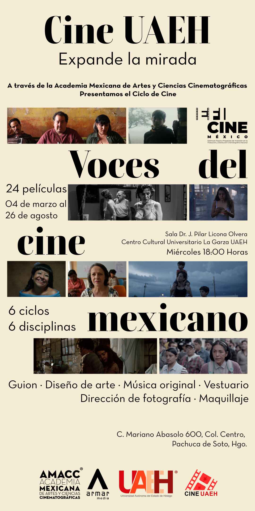 La Universidad Autónoma del Estado de Hidalgo a través de Cine UAEH, en el Centro Cultural Universitario La Garza; es la sede que recibirá a todo el público interesado en disfrutar de esta experiencia cinematográfica.
