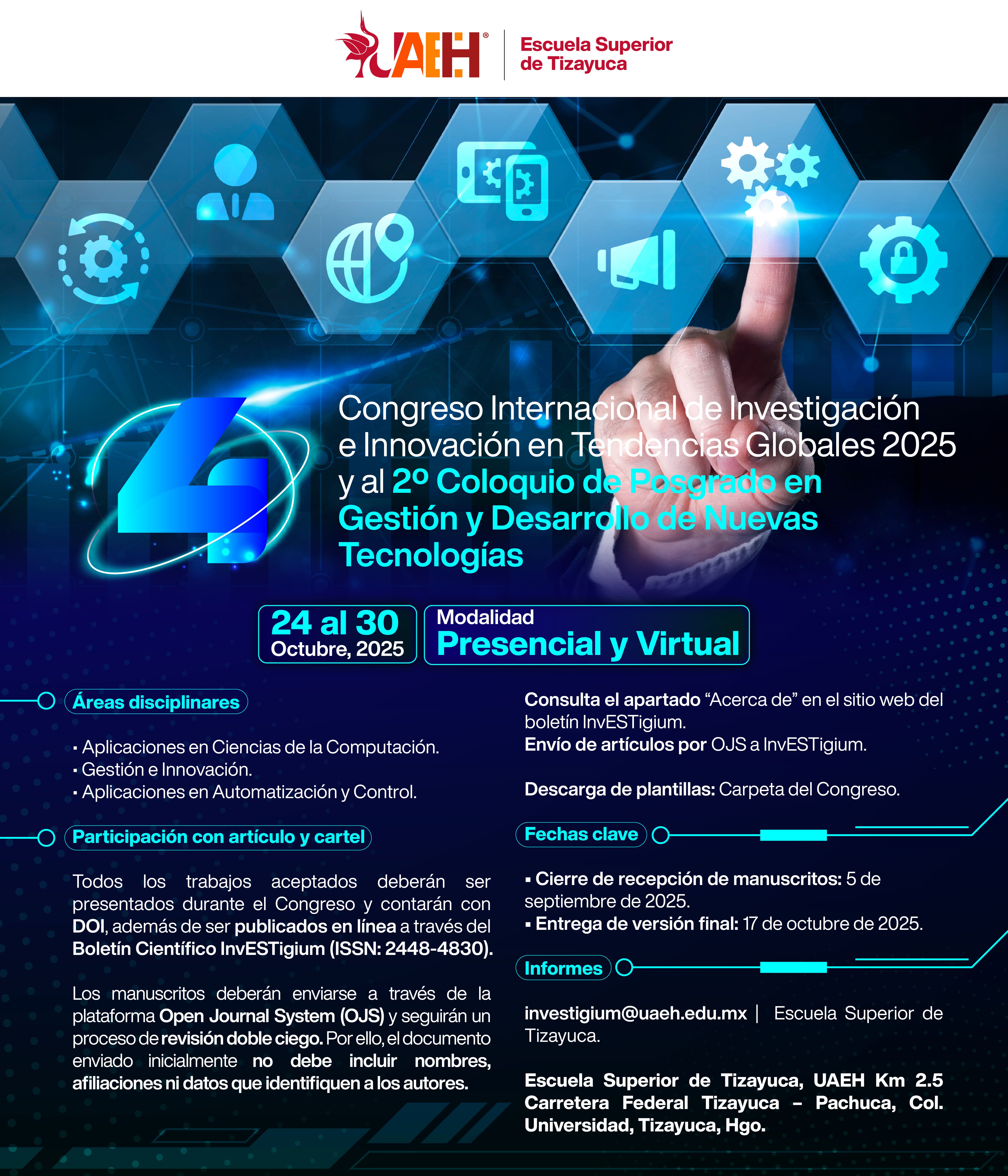 Convocatoria Internacional de Investigación e Innovación en Tecnologías Globales 2025 y al 2° Coloquio de Posgrado en Gestión y Desarrollo de Nuevas Tecnologías
