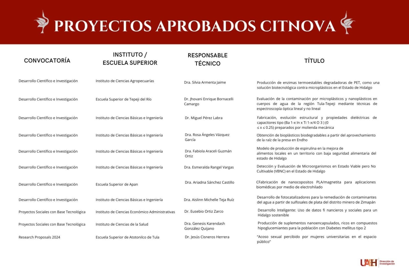 Proyectos aprobados CITNOVA