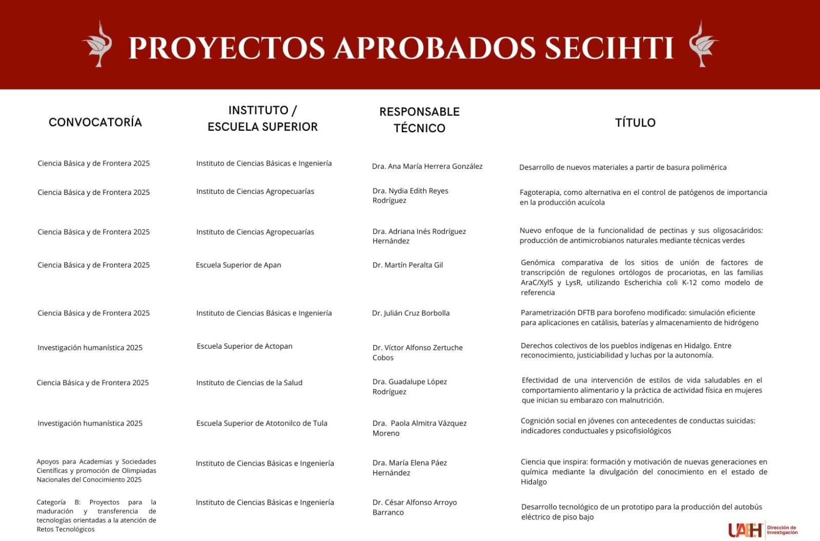 Proyectos aprobados SECIHTI