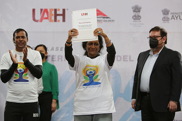 La Universidad Autónoma del Estado de Hidalgo (UAEH), en conjunto con la Embajada de India en México, celebró el Día Internacional del Yoga con una Macroclase en el Polifórum “Carlos Martínez Balmori”.