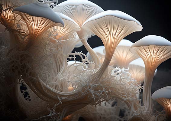 Enraizadas en lo profundo de la oscura y húmeda tierra, se expande e hilvana una diminuta pero compleja red de caminos infinitos que trazan un mundo desconocido, casi imperceptible, donde dos reinos se funden para iniciar una conversación silenciosa, biológica, eterna e inquebrantable que sostiene a nuestro mundo natural.