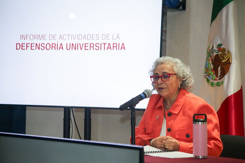 Durante la presentación de su informe, Elsa Leonor Ángeles Vera, defensora universitaria, destacó: “Nuestra meta es que todas las personas que integran la comunidad universitaria sepan dónde presentar una queja cuando consideren que sus derechos han sido vulnerados”.