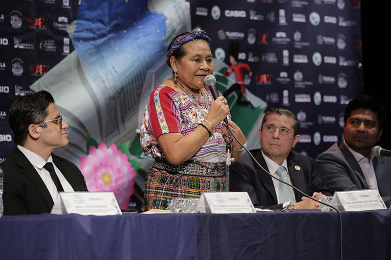 Asimismo, el acto contó con la asistencia de Rigoberta Menchú Tum, Premio Nobel de la Paz, quien enfatizó el papel fundamental del sector educativo en este tipo de foros culturales, un ámbito que en este caso está representado por una institución pública como la UAEH.
