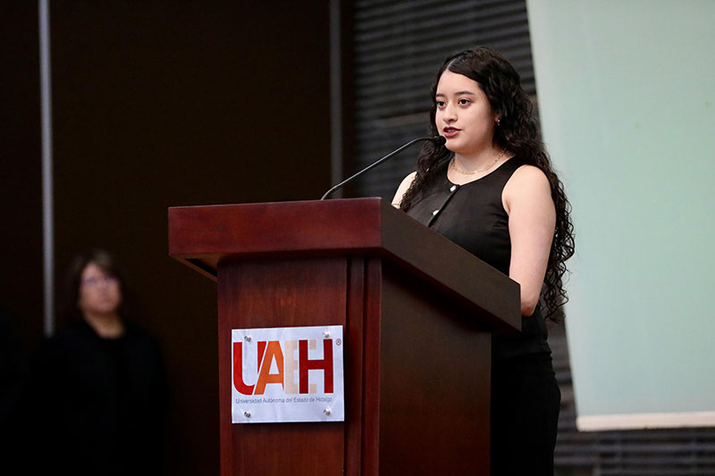 En voz de los condecorados, Abigail Aguilar Ávila enfatizó que formar parte de la UAEH implica construir una identidad basada en los principios, la integridad y la dedicación, poniendo los conocimientos al servicio de la sociedad. Asimismo, agradeció a sus seres queridos por su apoyo incondicional y reconoció al profesorado por guiarlos en el desarrollo de su máximo potencial.
