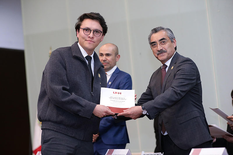 Por su parte, Jesús Israel Monroy Muñoz, director general de Evaluación de la institución, señaló que esta condecoración evidencia la cultura de excelencia de la UAEH, ya que solo se otorga a quienes obtienen calificaciones sobresalientes en el primer intento. En este sentido, resaltó que la Universidad ocupa el segundo lugar a nivel nacional, con una tasa del 8 %, entre las instituciones con mejor desempeño académico.