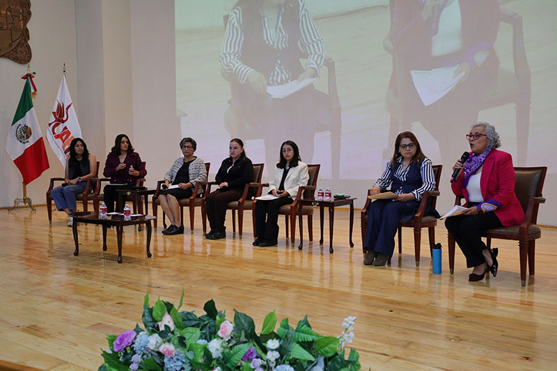En el foro participaron Citlali Anahí Monzalvo López, directora general de Comunicación Social; Sandra Gómez Sánchez, alumna de la Licenciatura en Cirujano Dentista; Alma Rosa Barajas Espinosa, profesora investigadora de la Escuela Superior de Huejutla (ESH); Elizabeth Medina Vieira, vigilante adscrita a la Dirección de Protección Universitaria; Marcela Flores Pérez, administrativa en la Dirección de Recursos Financieros; y Martha Estela Meneses González, académica del Departamento de Contabilidad.