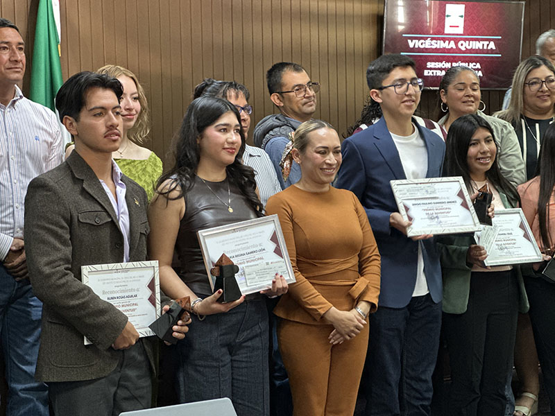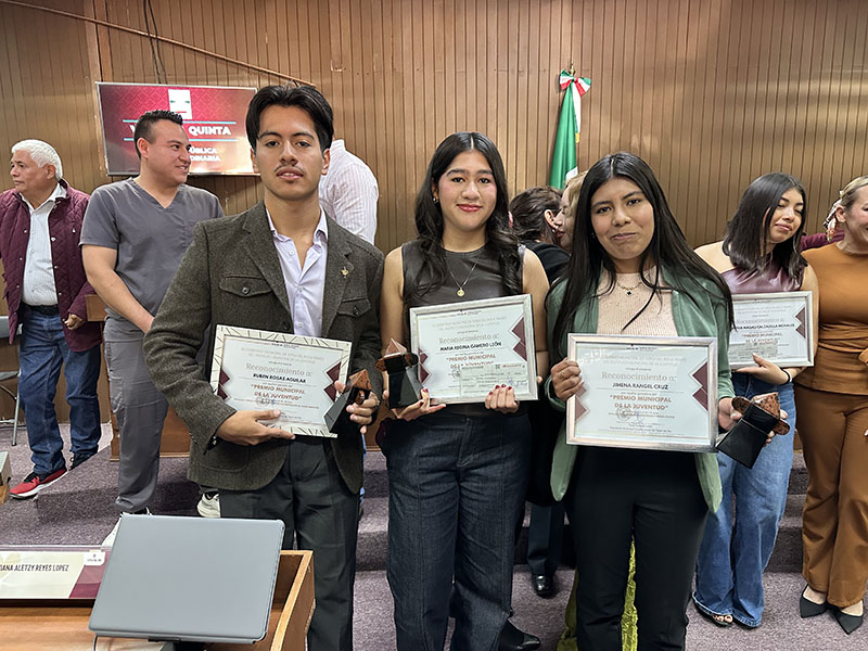 A través del Instituto Municipal de la Juventud, la alcaldía reconoció a Rubén Rosas Aguilar en la categoría B (18 a 29 años), por Impacto Social y Protección al Medio Ambiente. En la categoría A (12 a 17 años), María Regina Gamero León fue premiada en Expresiones Artísticas y Culturales, mientras que Jimena Rangel Cruz obtuvo el galardón en Logros Científicos y Tecnológicos.