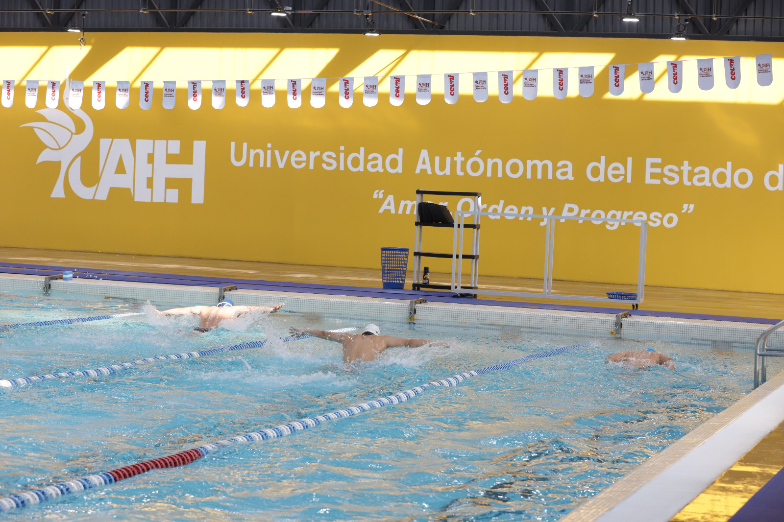 Mineral de la Reforma, Hidalgo. – El Centro de Extensión Universitaria (CEUNI) de la Universidad Autónoma del Estado de Hidalgo (UAEH) realizó con éxito el Primer Encuentro Amistoso de Natación, que reunió a competidores de todas las edades, quienes acompañados de familiares disfrutaron una jornada que combino disciplina, aprendizaje y convivencia.