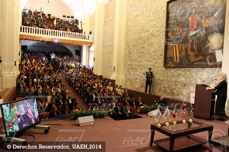 Pachuca de Soto, Hidalgo.- La ganadora del Premio Nobel de la Paz 1997 Jody Williams fue investida como Profesora Honoraria Visitante (PHV) de la Universidad Autónoma del Estado de Hidalgo (UAEH), como parte del Régimen de Seminarios Internacional 2014.