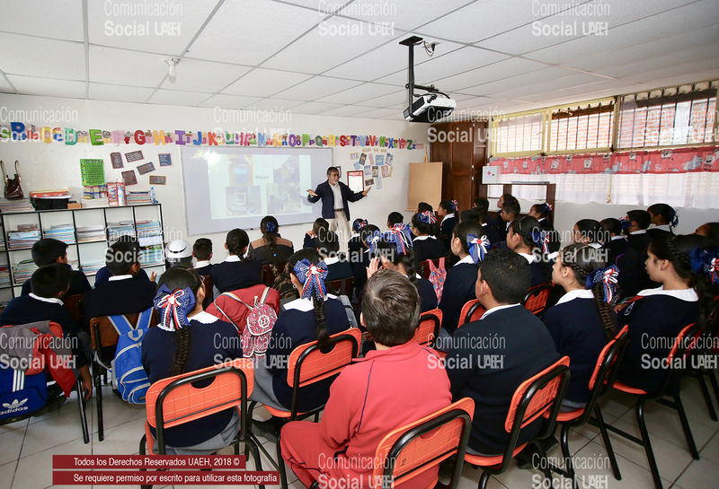 Pachuca de Soto, Hidalgo.- Estudiantes de la escuela primaria “Profesor Arnulfo Islas” aprendieron a dar un mejor manejo a los desechos sólidos para contribuir al cuidado del medio ambiente, durante la Conferencia “Reciclaje: Un juego útil y divertido”, que fue impartida en ese plantel como parte del Programa “Domingos en la Ciencia” que realiza la Universidad Autónoma del Estado de Hidalgo (UAEH), en coordinación con la Academia Mexicana de las Ciencias.