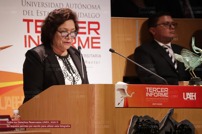 En su turno, Yolanda Legorreta Carranza, directora general de Asuntos Jurídicos de la ANUIES en representación de Jaime Valls Esponda, secretario general del organismo, destacó las aportaciones a nivel nacional de la UAEH y su rector, al convertirse en un referente para todas las instituciones autónomas del país, con la defensa del principio sustancial de la autonomía universitaria, al sentar precedente el 3 de octubre del 2018, tras el fallo de la Suprema Corte de Justicia de la Nación.