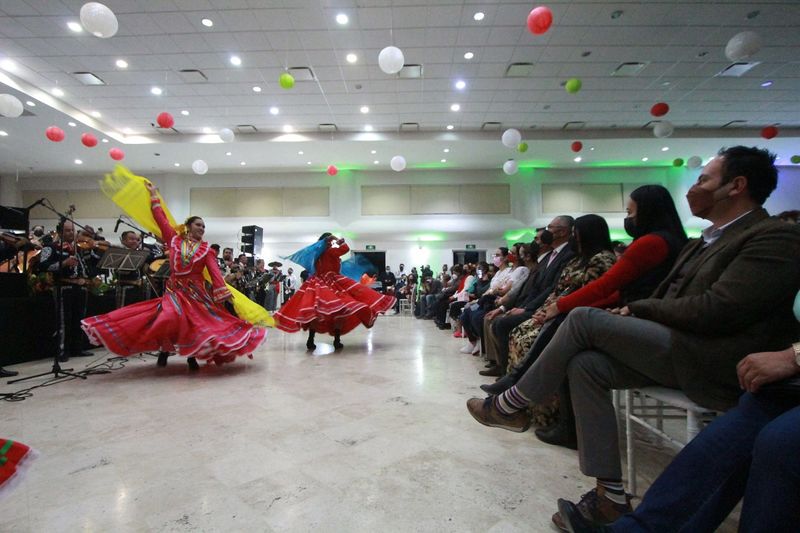 El Ballet Folclórico “Tollan” retumbó el suelo con su zapateado y lleno de color el recinto universitario con el movimiento de faldas, sarapes, listones y sombreros, mientras que el Mariachi Culturla de la UAEH “Aztlán” hizo vibrar sus violines, guitarras y cuerdas vocales para interpretar “El son de la negra”.