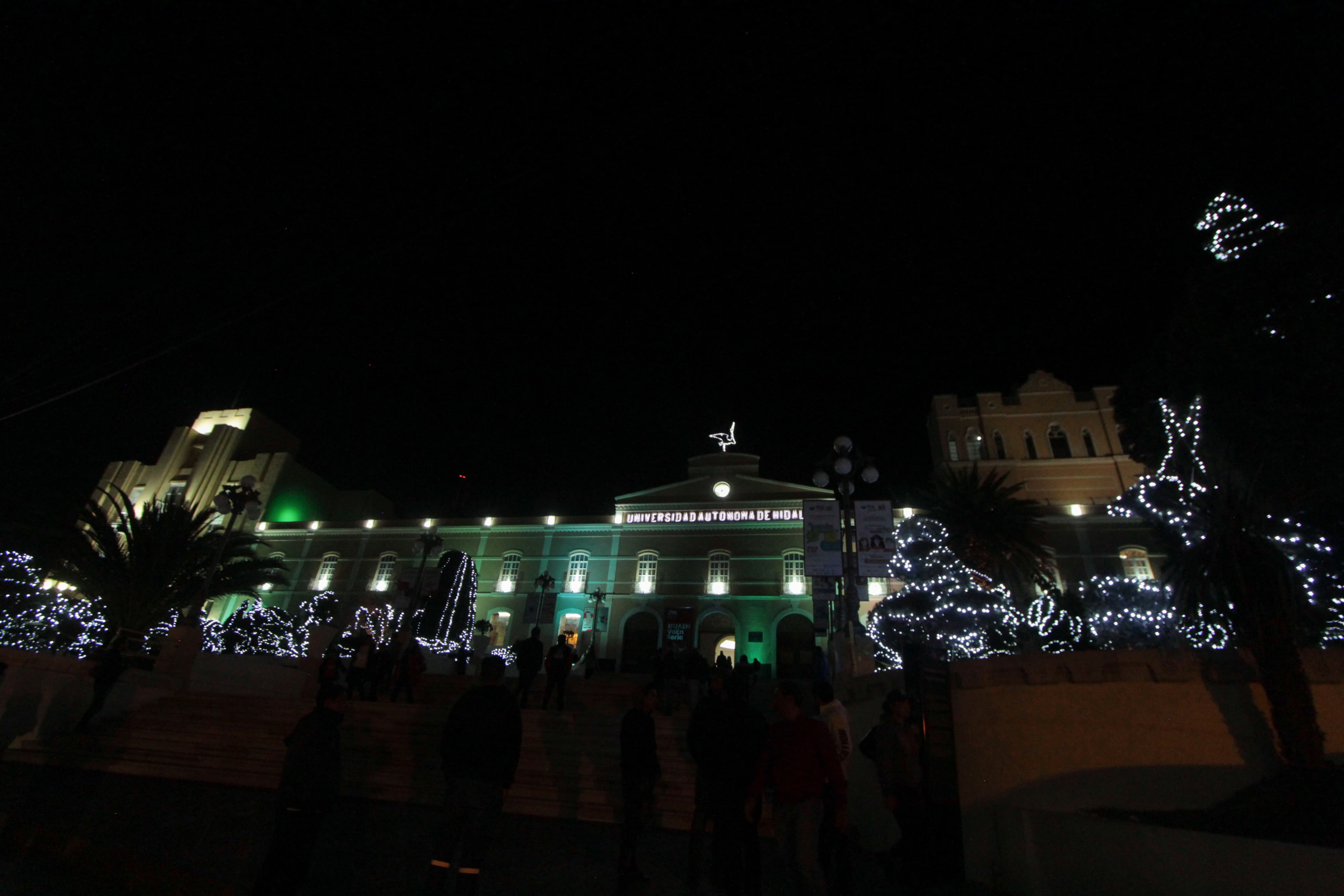 Pachuca de Soto, Hidalgo. - Como se acostumbra desde hace cerca de 30 años y en un gran ambiente familiar, sonrisas infantiles, teatro y arte circense, la Universidad Autónoma del Estado de Hidalgo (UAEH) llevó a cabo la noche de este viernes, 01 de diciembre, el Tradicional Encendido de Luces Navideñas que adornan el emblemático y antiguo Centro Cultural Universitario "La Garza", conocido también como Edificio Central de esta casa de estudios, ubicado en la Calle de Abasolo de la colonia centro de la capital hidalguense.