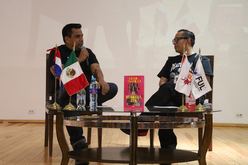 Finalmente, el autor Carlos Velázquez, cronista y narrador, presentó su último libro El Menonita zen, una obra literaria que cuenta con siete relatos situados en distintas geografías, algunas ubicadas en el norte del país y otras en la Ciudad de México. Dichos relatos contienen mucho humor negro, historias extremas con personajes muy variados y particulares.