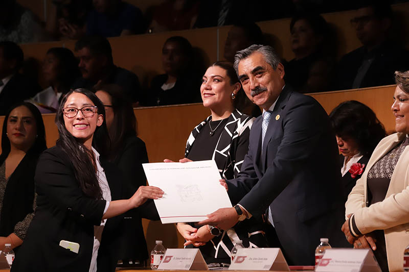“El título que reciben hoy es el resultado tangible de su esfuerzo, son el reflejo de la excelencia y calidad educativa con la que se formaron. Hoy escriben un nuevo capítulo de logros. En sus manos está el poder de transformar vidas, unir brechas y ser actores esenciales cuyas acciones den soluciones a los retos actuales. El éxito se mide en el impacto positivo que tienen en su comunidad, ustedes son el legado de nuestra institución, su éxito es el de nosotros. Sean el ejemplo para las nuevas generaciones”, manifestó Octavio Castillo Acosta.