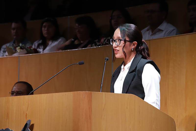 En representación de las y los egresados Garza, José Lázaro Rivera Romano, egresado de la Licenciatura en Música del Instituto de Artes (IA), indicó que la culminación de esta etapa es un parteaguas tanto en el ámbito personal como en el académico, pues ahora deberán afrontar nuevos desafíos, pero también, nuevas oportunidades y experiencias en las que pondrán en práctica el conocimiento adquirido en las aulas.