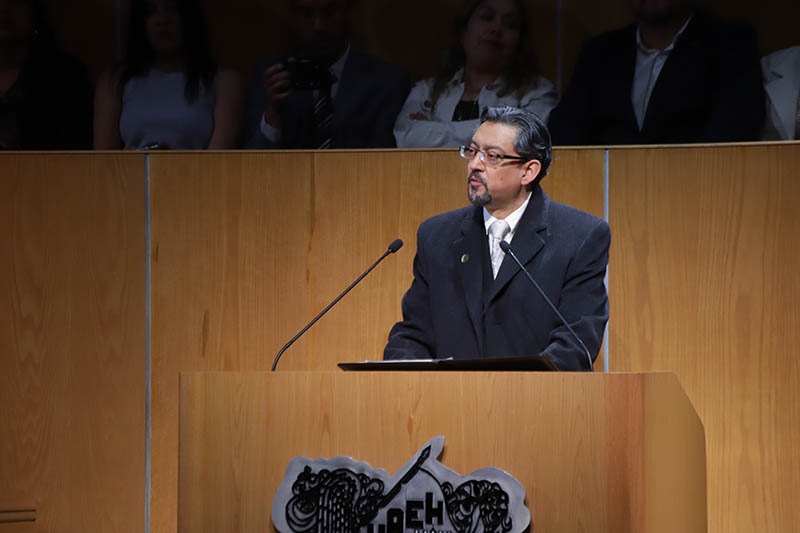 Recalcó que este evento es uno de los más significativos para la Universidad, ya que refleja el compromiso y cumplimiento de su misión de educar, al entregar a la sociedad profesionistas solidarios, empáticos y comprometidos con su entorno. Enfatizó que deben sentirse orgullosos de pertenecer a la Autónoma de Hidalgo, una institución baluarte en Hidalgo, con reconocimiento y prestigio nacional e internacional.