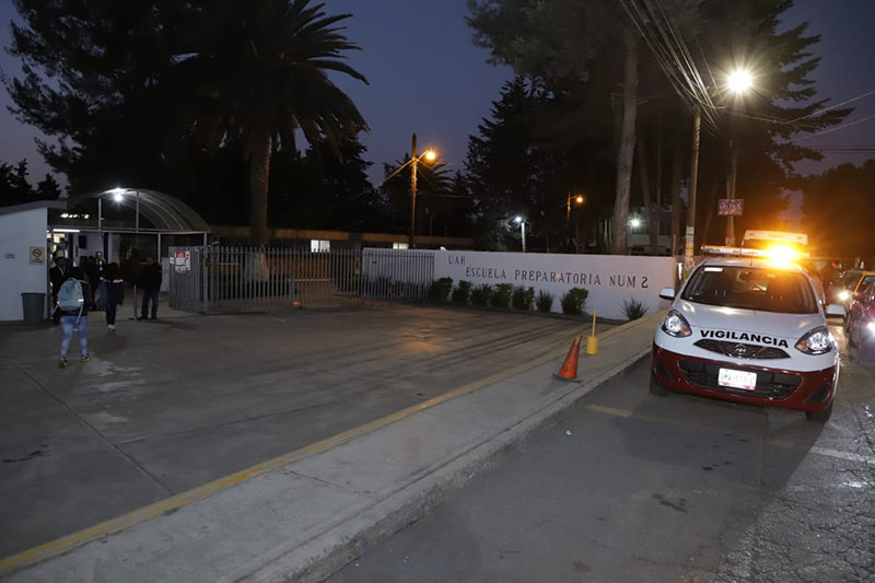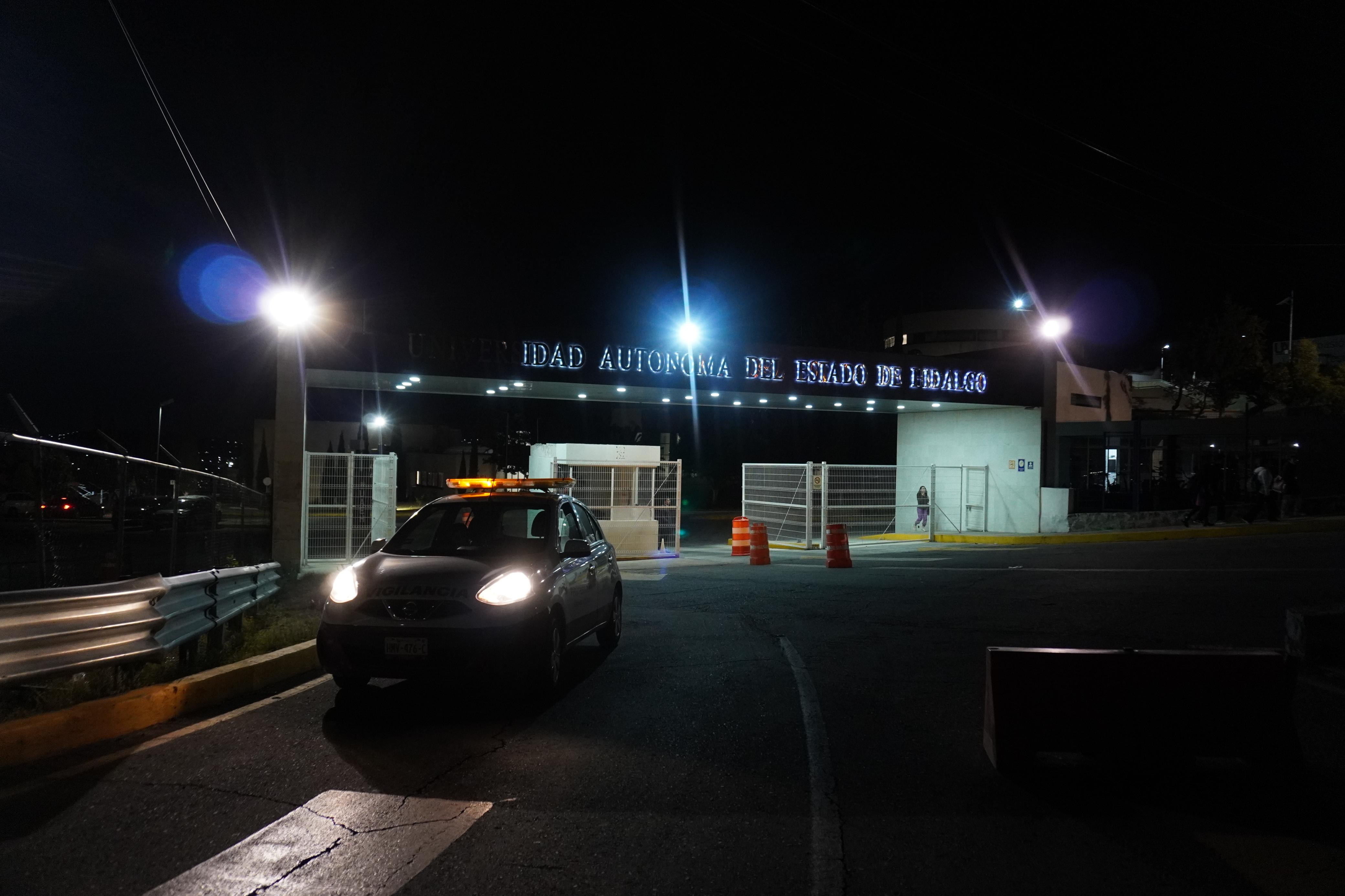 Como parte de estas acciones, se han intensificado los rondines de vigilancia en puntos estratégicos de los distintos campus, mediante el uso de unidades vehiculares de seguridad de la UAEH. Estas medidas buscan prevenir incidentes, disuadir conductas que puedan alterar el orden y garantizar una respuesta rápida ante cualquier situación de riesgo. Adicionalmente, se ha mejorado el alumbrado en las zonas periféricas de los espacios universitarios, reforzando así la seguridad en los accesos y áreas comunes.