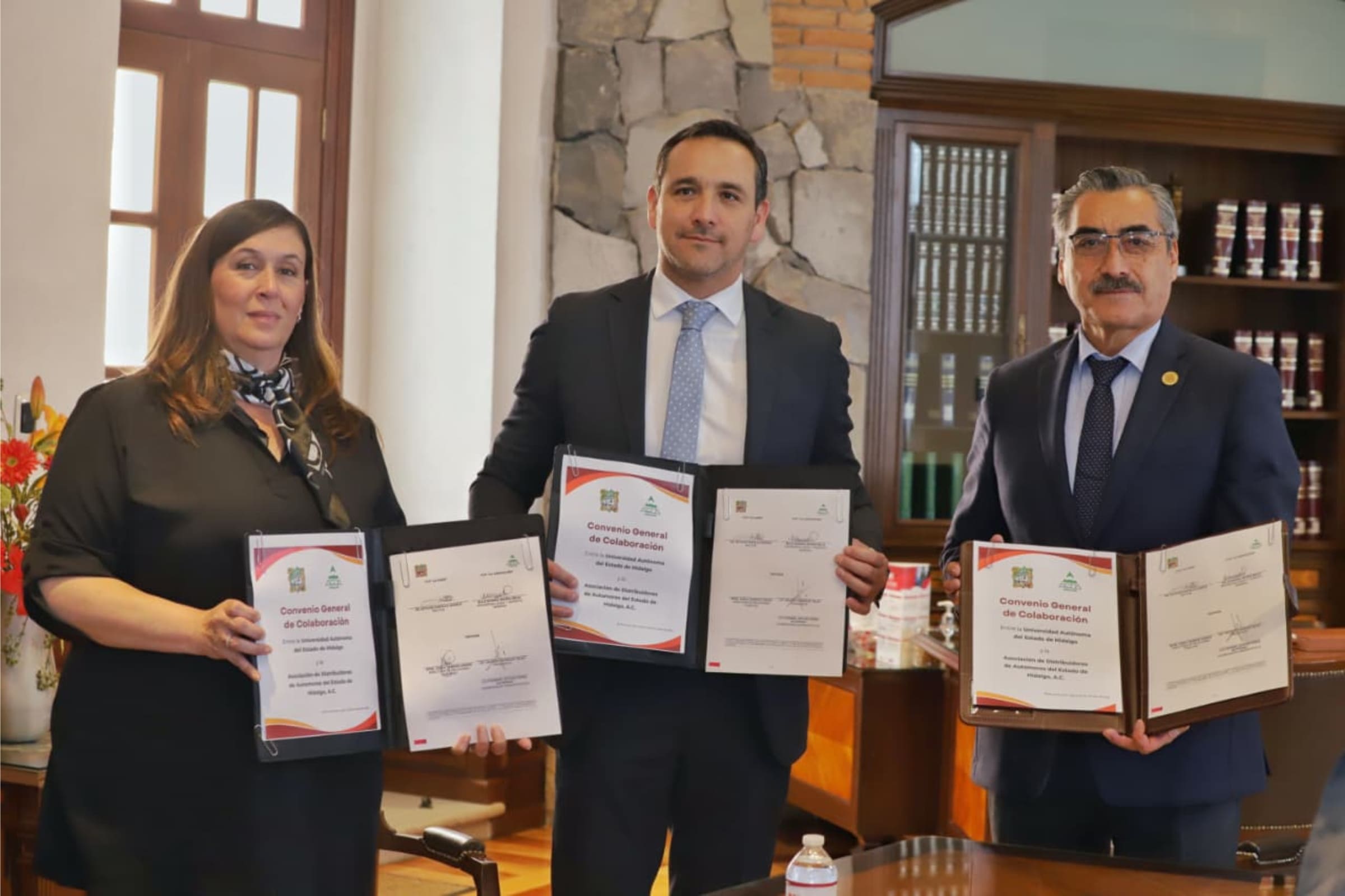 Pachuca de Soto, Hidalgo. – La Universidad Autónoma del Estado de Hidalgo (UAEH) y la Asociación de Distribuidores de Automotores (AMDA) del Estado de Hidalgo A.C. firmaron un convenio general de colaboración, con la finalidad de desarrollar proyectos académicos, científicos, culturales y de vinculación.