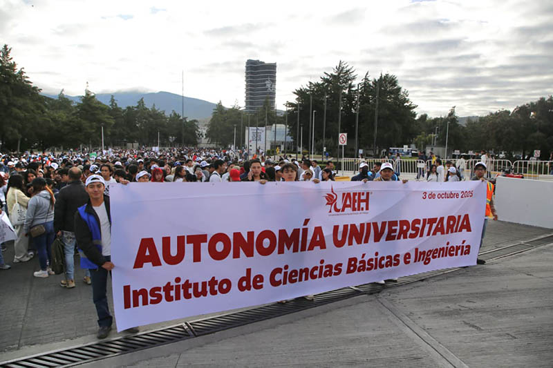 Al llegar a la Plaza Juárez, el rector Octavio Castillo Acosta llamó a la comunidad Garza y a la sociedad hidalguense a celebrar la Autonomía Universitaria, principio que garantiza la libertad de cátedra, de pensamiento, de creación y de investigación, además de otorgar a las universidades la responsabilidad de definir su propio rumbo. “Ha permitido brindar a nuestros estudiantes una formación integral, mayor cobertura educativa, mejores instalaciones, transporte y laboratorios; a nuestros compañeros trabajadores, oportunidades laborales, estabilidad, permanencia, así como desarrollo personal y profesional; mientras que a la ciudadanía le ha dado progreso”, recalcó.