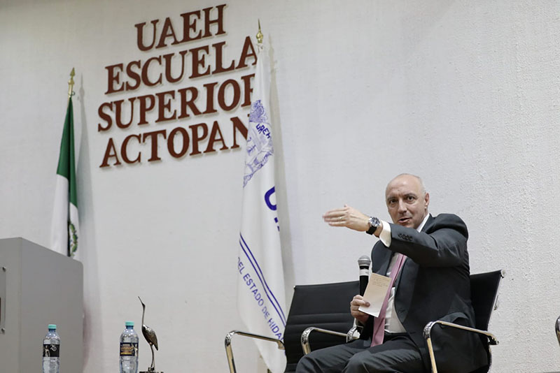 Actopan, Hidalgo. – El reconocido jurista mexicano Miguel Carbonell Sánchez sostuvo un diálogo con estudiantes y docentes de la Escuela Superior de Actopan (ESAc), perteneciente a la Universidad Autónoma del Estado de Hidalgo (UAEH), en el que compartió un decálogo para convertirse en abogadas y abogados de excelencia en un contexto de constantes transformaciones, mismas que debilitan la capacidad de respuesta de las instituciones y generan una cultura cívica poco comprometida con el conocimiento y la defensa de los derechos.