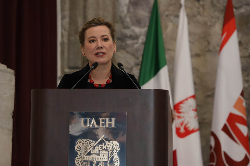 En tanto, Agnieszka Frydrychowicz-Tekieli, embajadora de Polonia en México, afirmó que la Autónoma de Hidalgo es la primera institución de educación superior del país que cuenta con el Programa de la Agencia Nacional Polaca para el Intercambio Académico (NAWA, por sus siglas en polaco), que tiene por objetivo promover las tradiciones y patrimonio de esta nación.