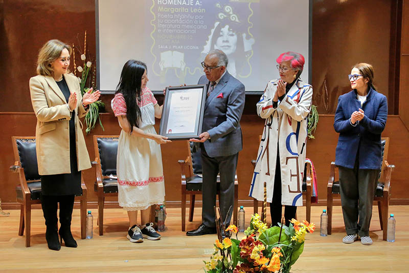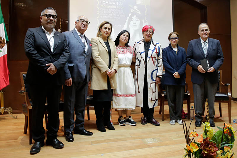 Pachuca de Soto, Hidalgo. – En el marco del Día Nacional del Libro, que se celebra cada 12 de noviembre, la Universidad Autónoma del Estado de Hidalgo (UAEH), a través de la Dirección de Fomento a la Lectura, rindió homenaje a la poeta hñahñu Margarita León, en reconocimiento a su valiosa contribución a la literatura universal, a la creación de comunidades lectoras en lenguas originarias y a la preservación de la cultura indígena en la entidad y el país.
