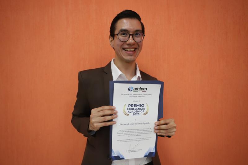 Pachuca de Soto, Hidalgo. – “Obtener un reconocimiento nacional es resultado de años de disciplina y dedicación académica”, expresó Enrique Jesús Guzmán Argüelles, estudiante de la Licenciatura en Médico Cirujano de la Universidad Autónoma del Estado de Hidalgo (UAEH), quien fue distinguido con el Premio a la Excelencia Médica 2025, otorgado por la Asociación Mexicana de Facultades y Escuelas de Medicina (AMFEM).