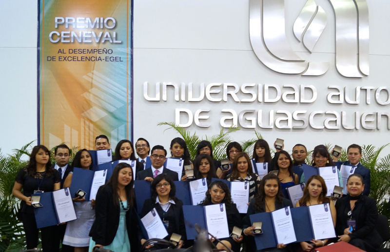 En la ceremonia, realizada en las instalaciones de la Universidad Autónoma de Aguascalientes, los galardonados recibieron una presea y un diploma que acredita su compromiso, esfuerzo y cumplimiento de las metas establecidas por el CENEVAL en referencia al manejo de indicadores de buena calidad.
