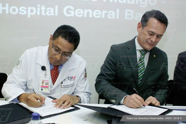 Con la finalidad de contar con campos clínicos para los siete programas educativos del área de la salud de nuestra universidad, así como desarrollar proyectos conjuntos de investigación, se firma el Acuerdo General de Colaboración con el Hospital General Balbuena.