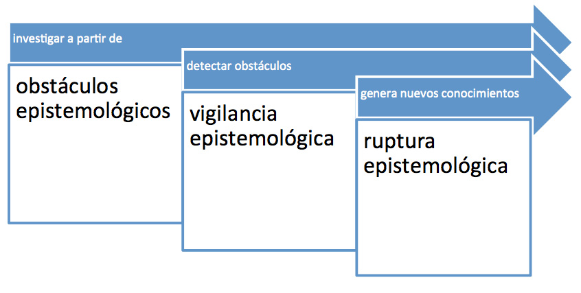 En “La formación del espíritu científico” (Bachelard, 1988), afirma que se llega pronto a la convicción de que hay que plantear el problema del conocimiento en términos de obstáculos”. No se trata de considerar los obstáculos externos sino aquellos que aparecen en el acto mismo de conocer. El primer obstáculo epistemológico es lo que ya sabemos del mundo. Por lo tanto se debe tener una vigilancia epistemológica que permita detectarlos y reconocerlos. Para alcanzar conocimientos nuevos debemos establecer una ruptura epistemológica para generar nuevo conocimiento porque nada esta dado todo se construye.