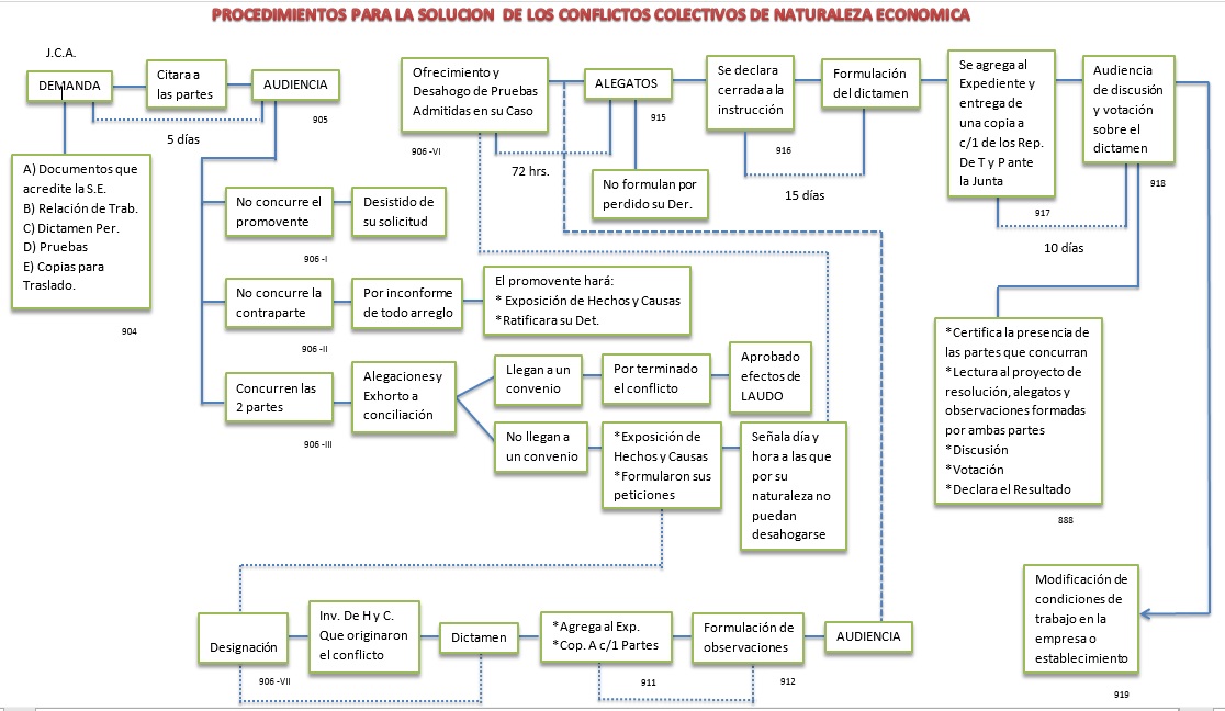 One of the institutions comprising the collective labor law is collective labor disputes, the Federal Labor Law in Chapters VI, VII, and VIII, establishes precisely collective disputes which are economic in nature and it is in their Chapter XIX where stable which is the procedure to resolve conflict situations that arise among the working classes and employers, but what is a collective labor dispute?, Mario de la Cueva defines labor disputes as "disputes that arise in time or due to the formation, modification or performance of individual or collective labor relations." Eugenio Perez Botija. He says they are "frictions that may occur in labor relations '' J. Jesus Castorena, notes that "the labor dispute is any dispute that arises between the subjects of labor law, during implantation, celebration, formation, interpretation, scope and enforcement of the rules, contracts and relationships of work". In Mexico the labor authorities seek to reconcile the interests of the parties and mediate the same case of disputes arising from collective agreements when they are requested by the parties.