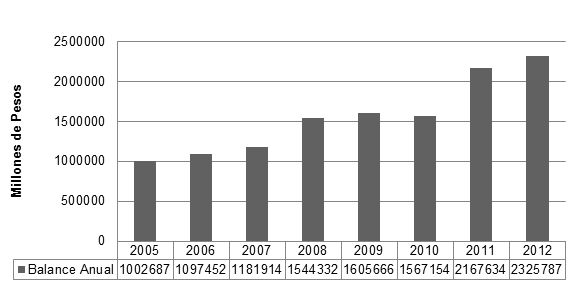 Figura 5. Balance de Banco de México, 2005-2012 (millones de pesos corrientes)