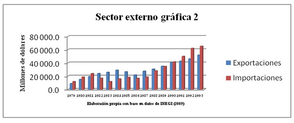 El sector exportador se transformó en el sector más dinámico de la economía mexicana, en el período de 1987 a 1994 las exportaciones crecían a una tasa promedio anual de 13.8%. No obstante, para principios de la década de los noventa el déficit comercial era muy superior al que se tuvo en 1982.